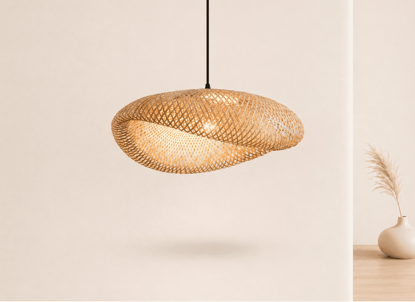 Diese handgefertigte Pendelleuchte verbindet natürliche Materialien mit einer ruhigen, modernen Formsprache. Geflochten aus feinem Bambus entsteht eine leichte, luftige Struktur, die das Licht sanft streut und eine warme, einladende Atmosphäre schafft. Jedes Detail wirkt bewusst reduziert und dennoch ausdrucksstark – eine Balance aus organischer Textur und klarer Ästhetik. Inspiriert vom nordischen Wohnstil bringt die Leuchte eine stille Eleganz in den Raum und setzt einen weichen, natürlichen Akzent. Ob im Wohnbereich, über dem Esstisch oder in ruhigen Rückzugsorten – sie fügt sich harmonisch in minimalistische Interieurs ein und verleiht jedem Raum eine besondere Tiefe und Wärme.
